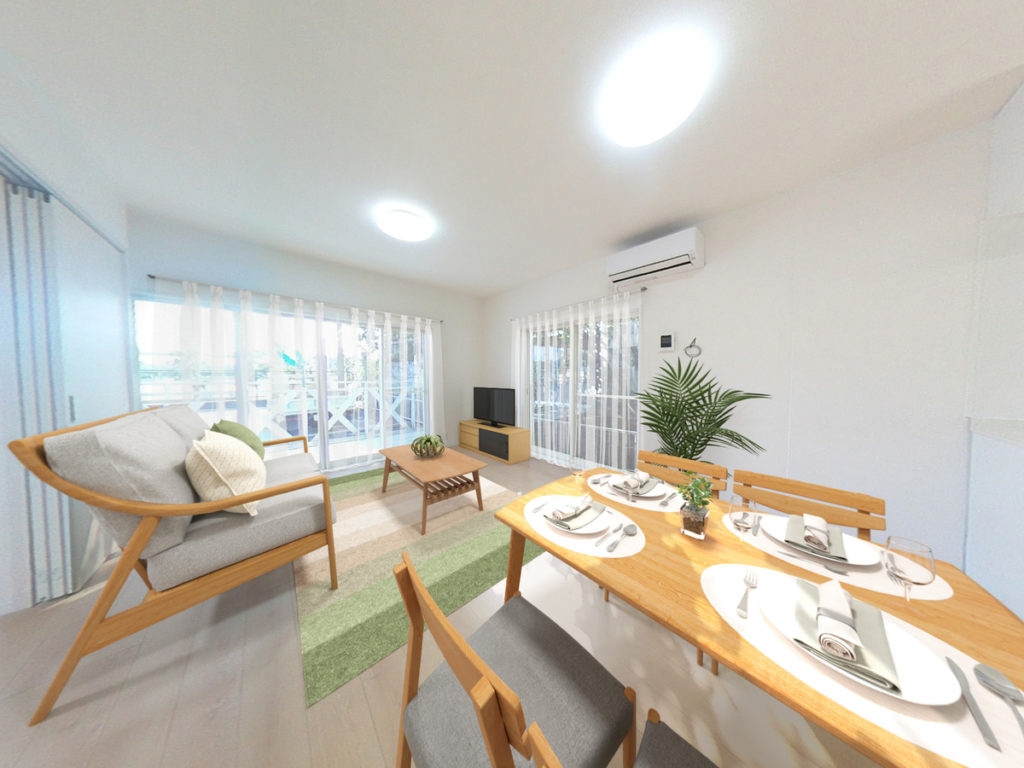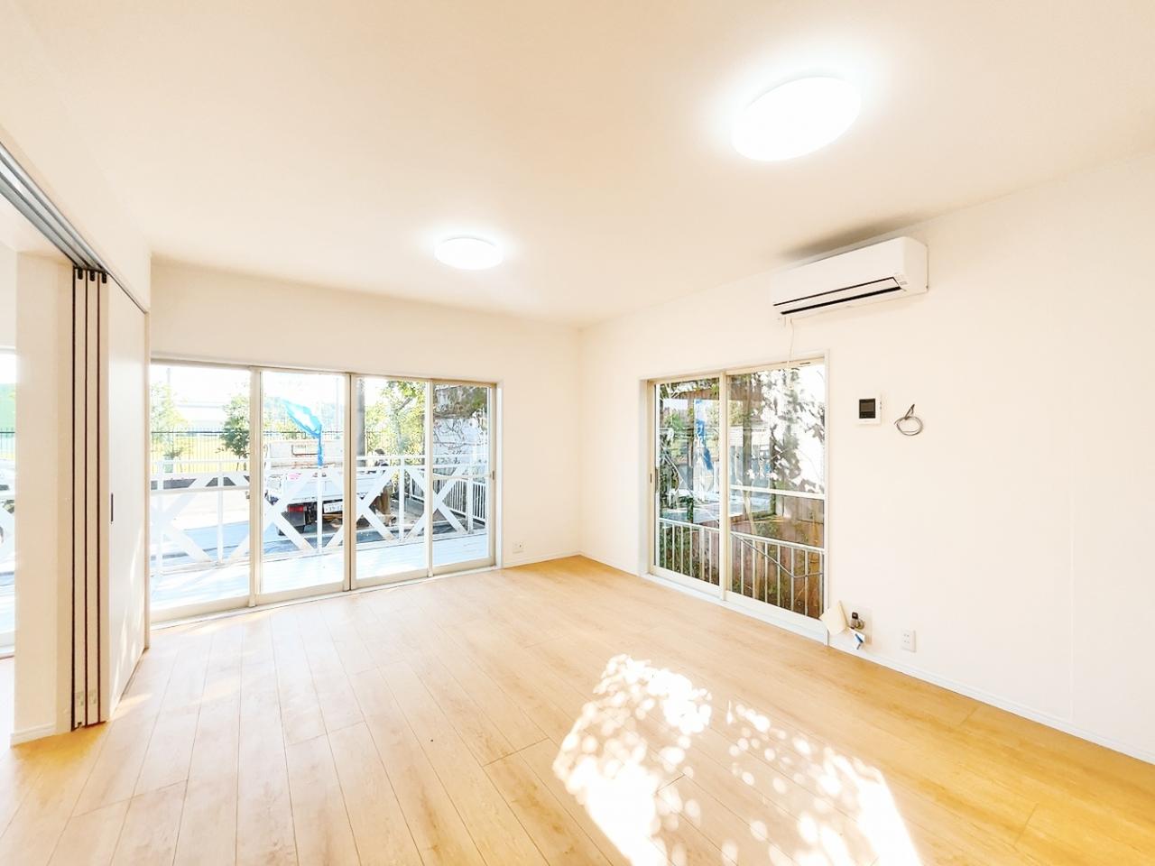 水廻り新品交換(システムキッチン・ユニットバス・トイレ・洗面化粧台)、クロス・網戸張替、床フローリング張、照明器具交換、TVドアホン・火災警報器設置、ハウスクリーニング